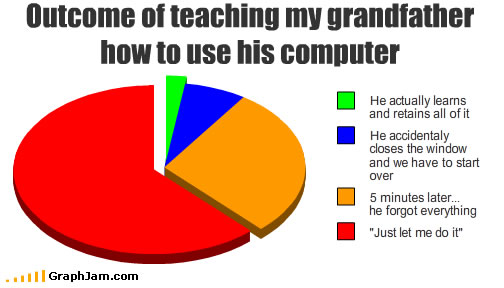 Lăsând mișto-ul la o parte, mi se pare o idee super tare și felicit managementul firmei că s-a gândit la un asemenea program. Dacă aș fi știut mai din timp de lucrul ăsta aș fi avut mai puține fire de păr alb în cap (Marica, scuze). Așadar, dacă știți vreo persoană în vârstă care are nevoie de ajutor în descifrarea tainelor calculatorului trimiteți-o să se înscrie în program.