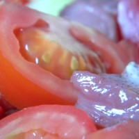 Totul se condimentează, se stropește cu ulei, se amestecă bine astfel încât uleiul și condimentele să ajungă peste toate bucățelele, și se lasă la macerat la rece cam 30 de minute-1 oră.