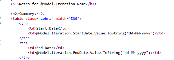 Since the reports will be either seen on a web page or sent by email and because theoretically the reports can also be generated by a desktop application, I’ve chosen to put the logic of generating the reports in the ReportingBL and generate them using Razor. Since Razor was designed to work with Web thingies and because the ReportingBL could be used by multiple clients without Web thingies I’ve downloaded a small set of classes from http://www.getcodesamples.com/src/EF734693 which handle the runtime compiling of my templates.