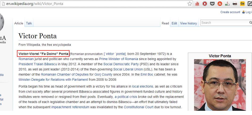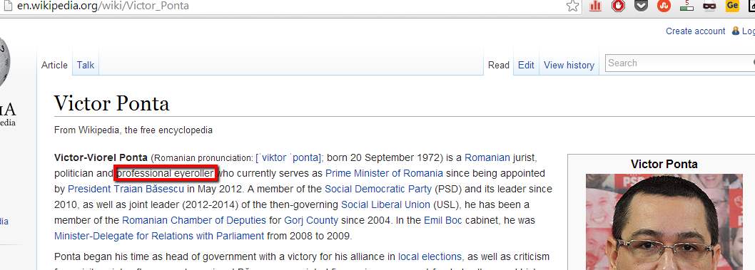 Cineva s-a jucat azi cu biografia lui Ponta de pe wikpedia.com.